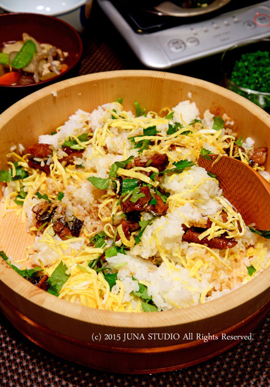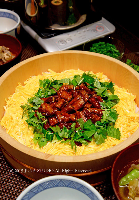 あとは錦糸卵とか三つ葉をそえて・・・。