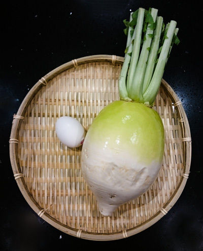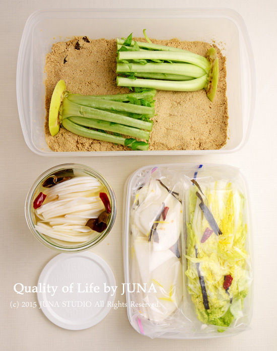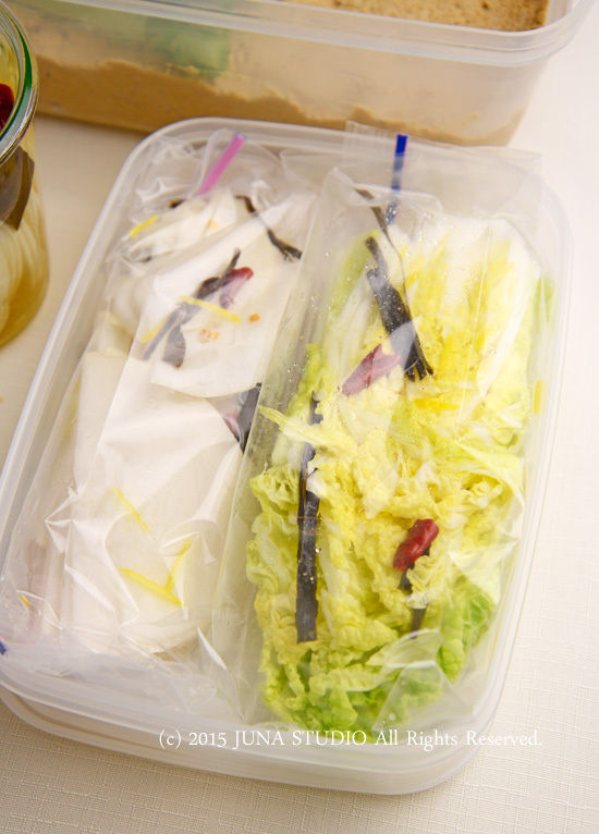 これは半月切りに切ったものを、塩、昆布、唐辛子、ゆずの皮に漬けたものです。