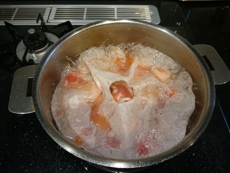 ※水分量がりんごより少し低めなので、アクが網などではすくいにくいため、