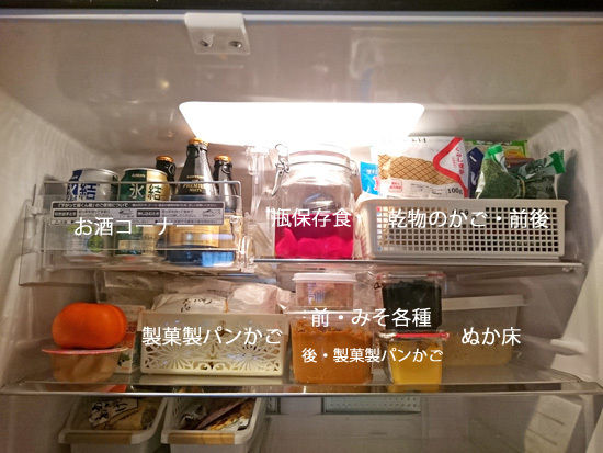 乾物のかごは、前に置いてあるものはよく使うごまとか、ふりかけ類とかそんな感じで、