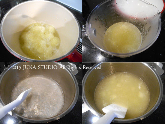 しっかりと煮溶かします(写真下左)。