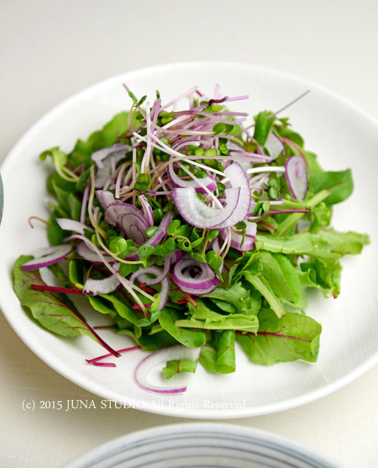 あとね、冷蔵庫でしなびれかけていたベビーリーフを発見したもんだから(笑)、