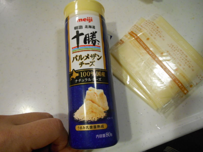 スライスチーズは十勝贅沢スライスのパルメザンブレンドで、
