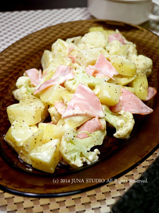 2.カリフラワー1/2房は小房にわけてゆで、水気をきる。