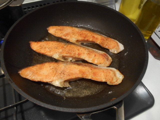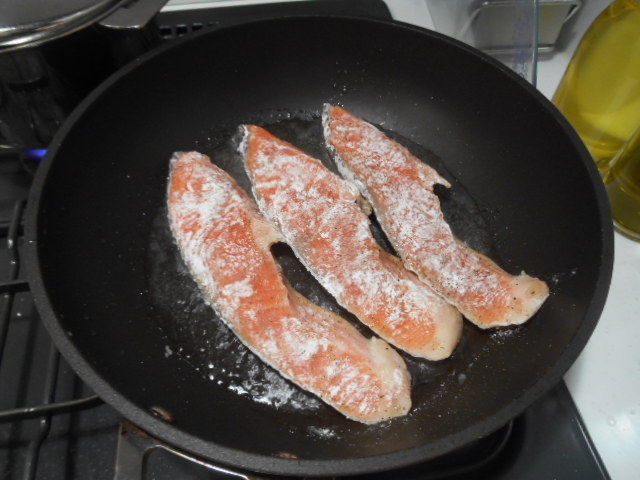 黒コショウ→薄力粉とまぶして同じ手順で焼きます。