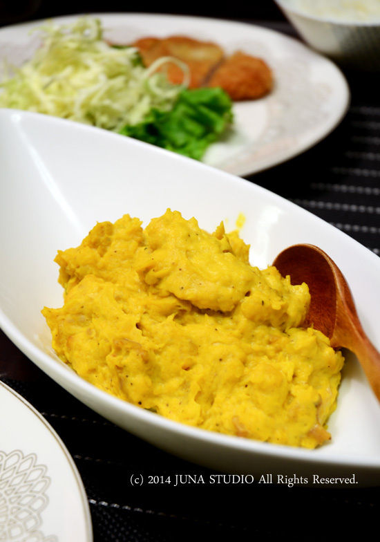 4.3をマッシュし、1、マヨネーズ、塩・コショウを加えてよく混ぜる。
