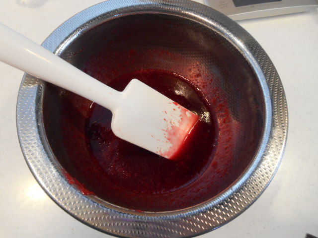 ※ざるの裏についたラズベリーの果肉はしっかりと削ぎ落とす。