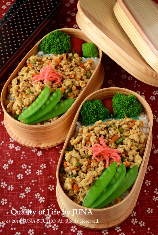 二番だし、酒・みりん・しょう油(1:1:1)で煮つめたものを、ごはんの上にのっけてます。