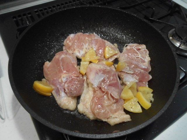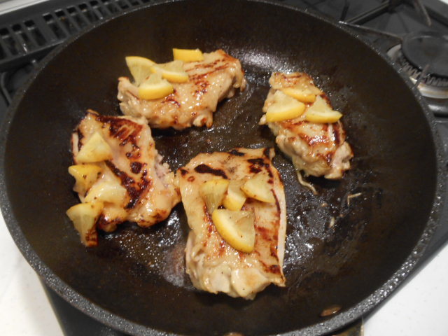 レモン塩漬けのチキンをお弁当用にとっておいて、朝ソテー。
