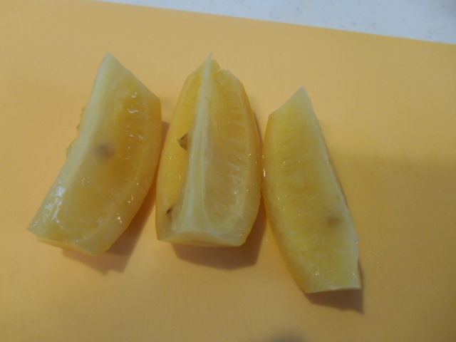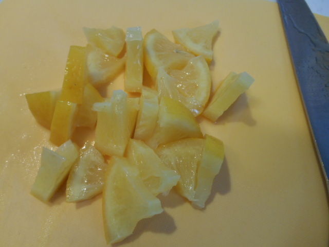 レモン塩はこの皮がおいしさの要にもなりますので、できれば皮ごとがいいと思うのですが、