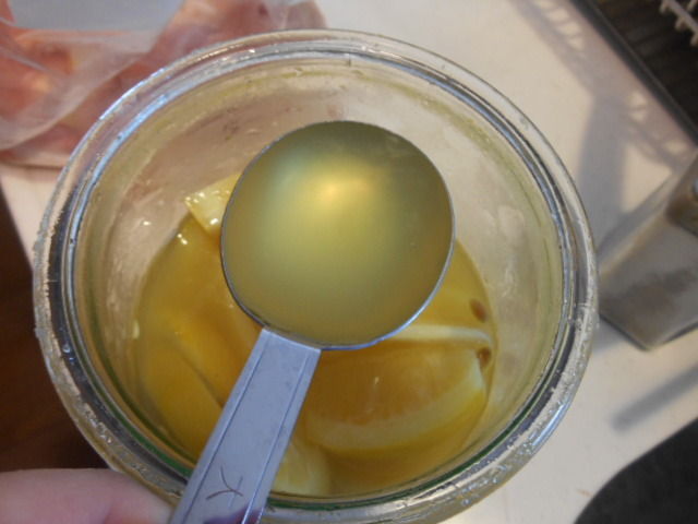 先日仕込んでおいた、塩分量20%の JUNA流レモン塩 が