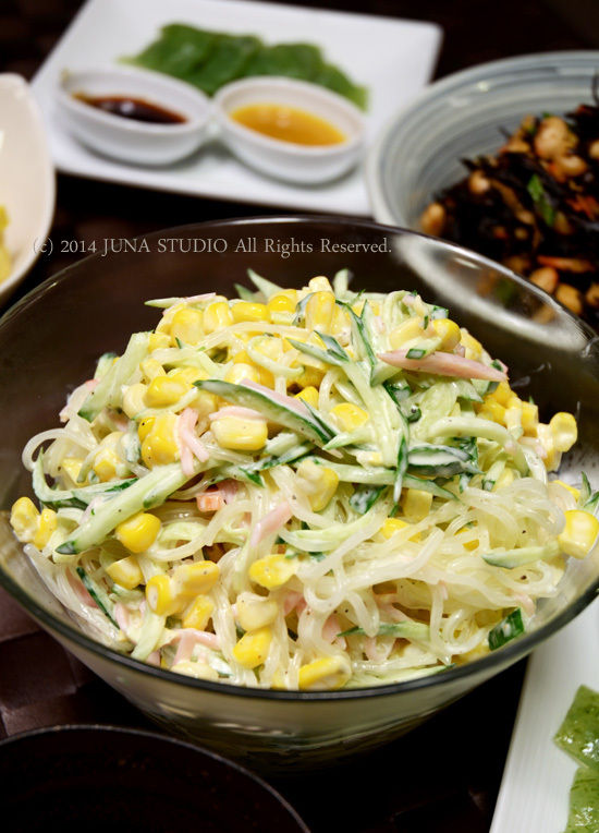 (春雨、きゅうり、ハム、コーン、マヨネーズ、塩・コショウ)