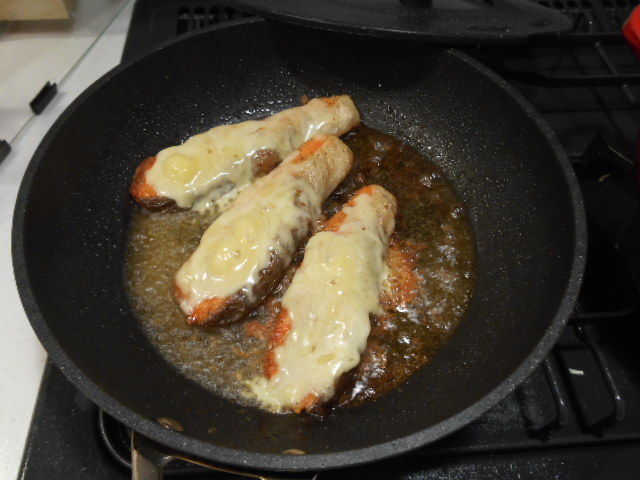 チーズがとけるまで中火で軽く蒸し焼きにする。