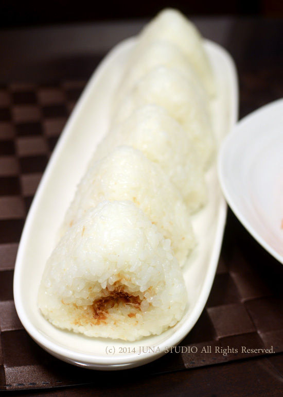 おかか、梅、塩にぎりの3種です。