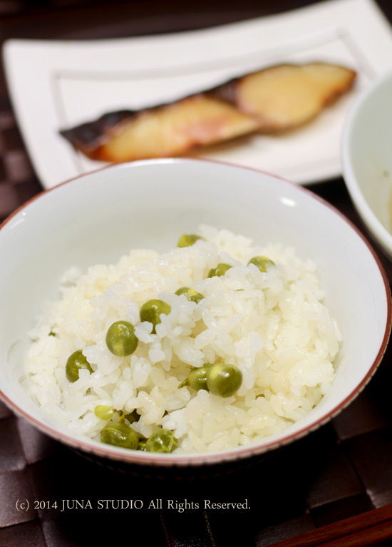 タイマー予約しておいた豆ごはんと、
