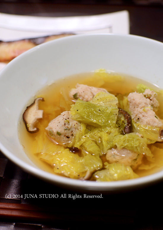 事前にしこんでおいた鶏団子で作ったスープと