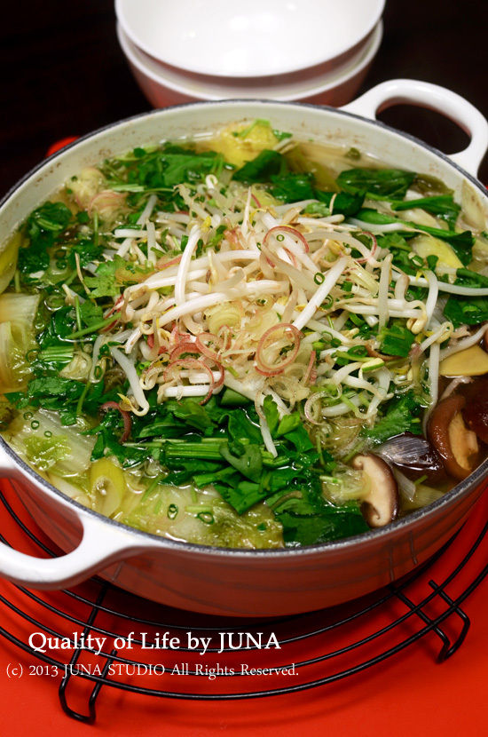 ちょっと薄いくらいに仕上げて、食べる時卓上で、ポン酢を少々かけていただくスタイル。