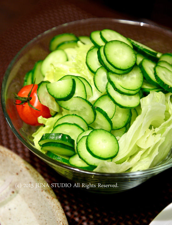 なぜかプチトマトが1個だけ入ったサラダ(笑)