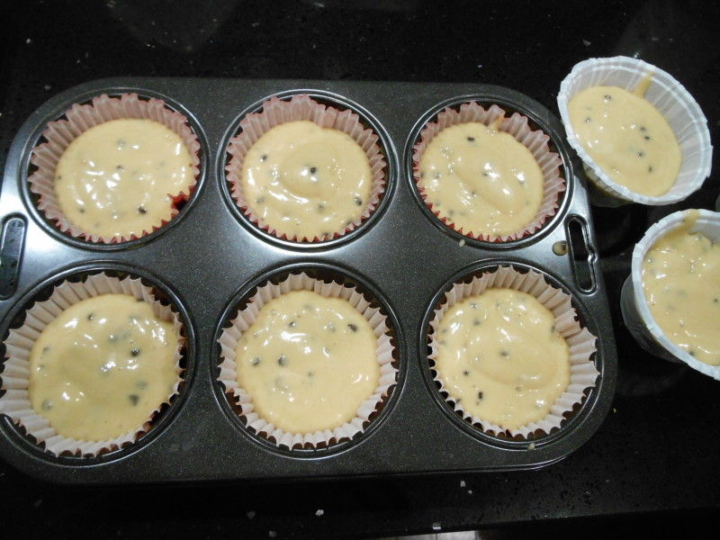 5.マフィン型にカップを入れ、6~7分目まで4を入れる。
